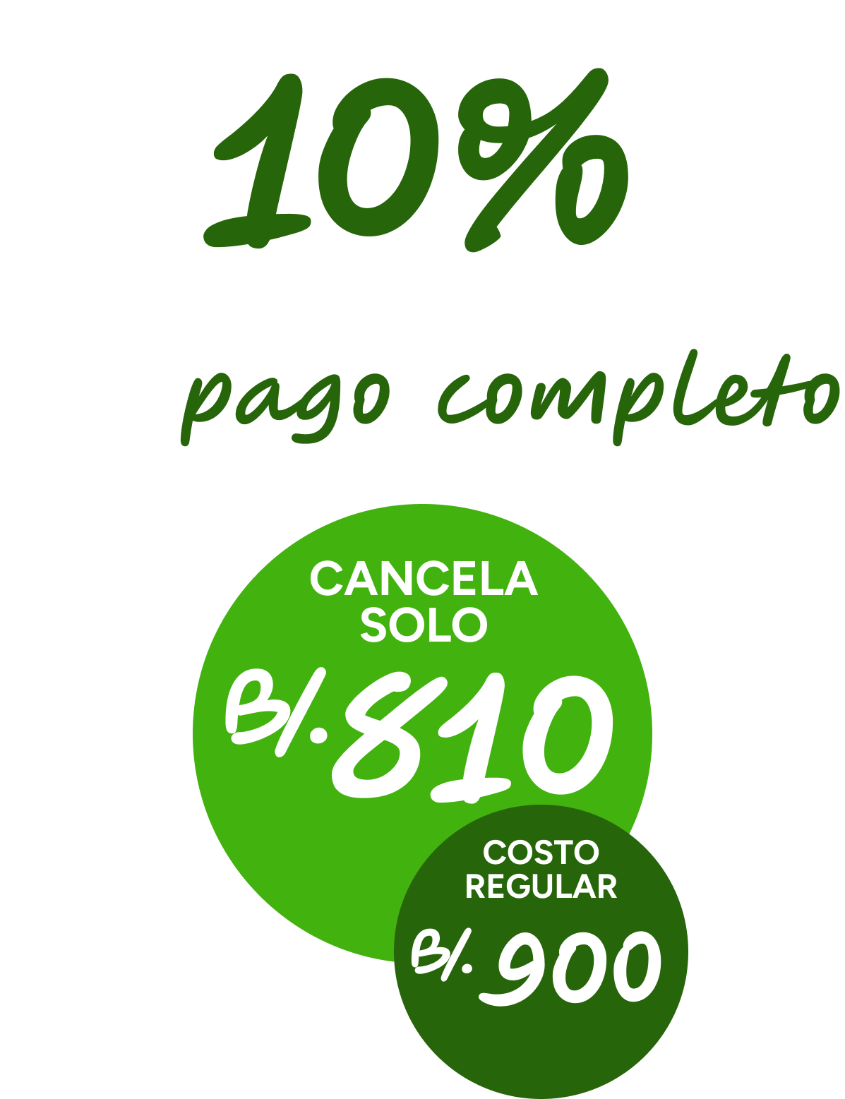 El descuento del 10% aplica solo para aquellos que completen el pago total hasta el .